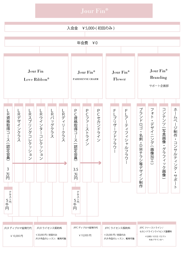 2.「JourFin」「LoveRibbon」「PARISIENNE CHARM」の名前を使用してレッスン、販売活動が可能となります。